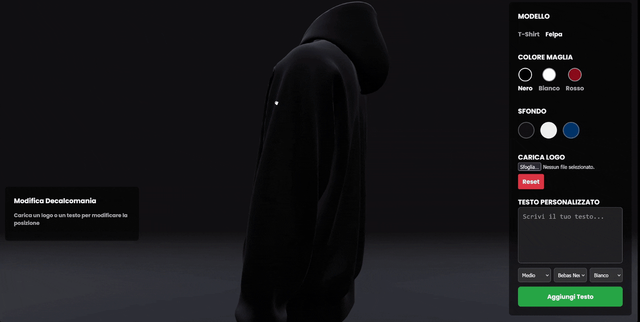 Un simulatore che genera un'anteprima del tuo merch. Crea in pochi secondi e manda in produzione!
